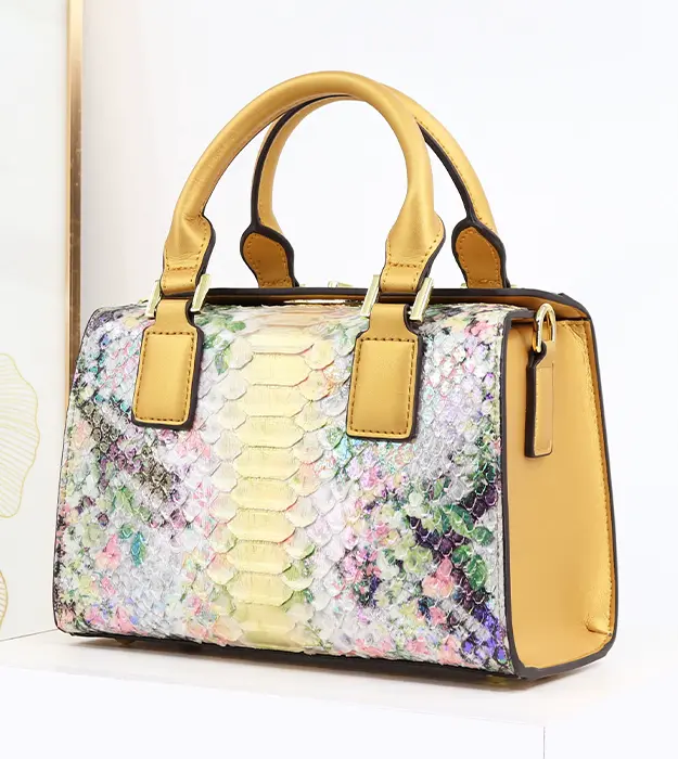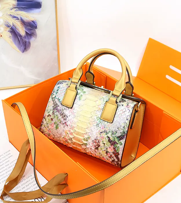 Izrađena od visokokvalitetne PU kože sa zlatno-pastelnim zmijskim dezenom, ova torba odiše prefinjenošću i vedrinom.