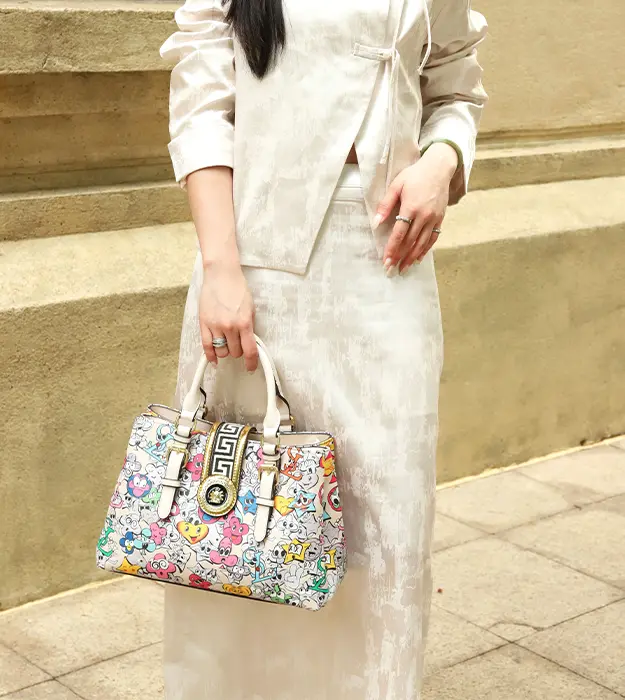 Ova torba nije samo dodatak — to je platno na kojem boje, oblici i karakter oživljavaju.