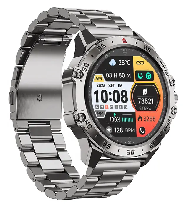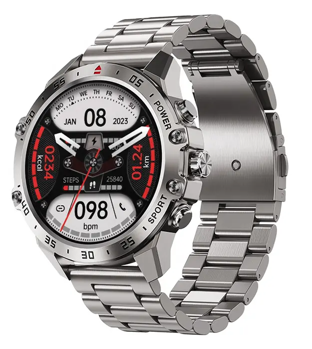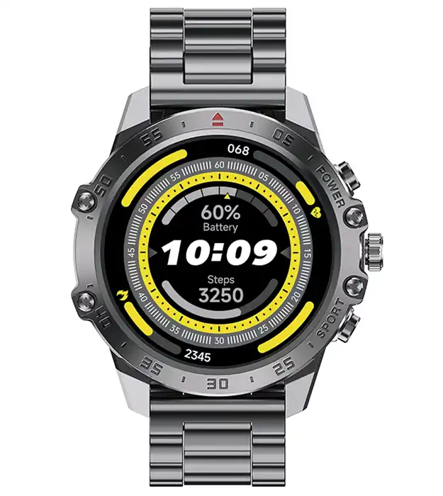• Sat je izrađen od visokokvalitetnog materijala legure cinka, što mu pruža čvrstoću i trajnost. Ovaj metalni okvir ne samo da izgleda elegantno, već je i otporan na ogrebotine i udarce. Ekran veličine 1.46 inča sa rezolucijom od 466 x 466 piksela omogućava izuzetnu jasnoću i živopisne boje, čak i na direktnoj sunčevoj svetlosti. Zahvaljujući funkcionalnim dugmićima, navigacija je jednostavna i prilagođena korisnicima koji vole tradicionalni osećaj upravljanja.