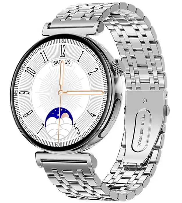 SilverElegance je vrhunski ženski pametni sat koji kombinuje sofisticirani dizajn, napredne funkcije i besprekornu tehnologiju. Kreiran za modernu ženu koja ceni stil i funkcionalnost, ovaj sat pruža savršenu ravnotežu između estetike i praktičnosti, idealan za svakodnevne obaveze i brigu o zdravlju.