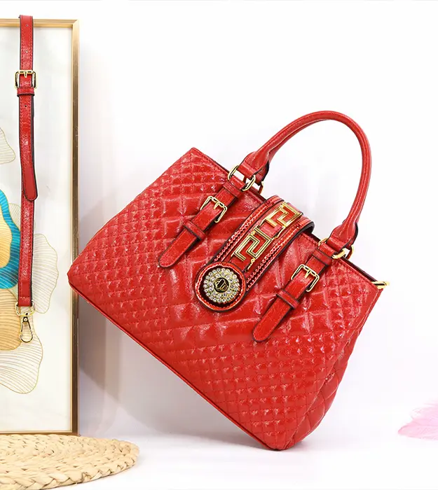 Izrađena od visokokvalitetne PU kože sa dijamantskim prošivom i luksuznim zlatnim akcentima, ova torba je oličenje smelosti i sofisticiranosti.